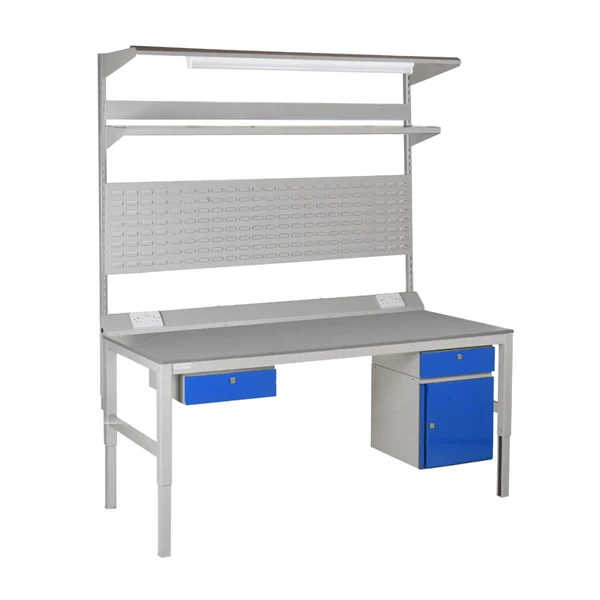 E8-BHLA5/B - Easy Order Bolt Adjustable Height Workbench | Worktop Size ( L X Wmm): 1500 X 750 | Worktop Type: Laminate | Door Colour: Blue